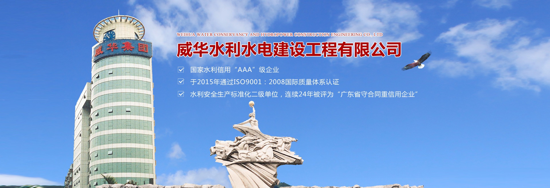 梅州市威華水利水電建設(shè)工程有限公司是廣東威華集團旗下全資子公司,主要從事 “水利水電工程”及“工業(yè)與民用建筑工程”施工。公司成立于1992年,注冊資本9180萬,是一家具有水利水電工程施工總承包二級資質(zhì),房屋建筑總承包三級資質(zhì),市政總承包三級資質(zhì)的一家大型民營施工綜合類企業(yè)。 公司現(xiàn)有各類工程技術(shù)、管理人員200多人,其中具有大專、本科以上學(xué)歷的占90%,具有中級以上職稱的人員80人,建造師90多人,專業(yè)人員包括水利水電、建筑、市政工程等。專業(yè)結(jié)構(gòu)合理、人員配置齊全。公司擁有二級總承包各項施工大型機具100多臺套。 公司現(xiàn)累計完成各大中型水利水電工程200余項,現(xiàn)代化工廠房30多宗,寫字樓及商住房20余項,合計建成水庫庫容10億m3,堤防建設(shè)300公里長,總建筑面積100萬㎡。 為進一步發(fā)展和壯大企業(yè)實力,提高企業(yè)的市場競爭力,公司領(lǐng)導(dǎo)深刻地認(rèn)識到質(zhì)量是企業(yè)生存之本,發(fā)展之本,不斷提高企業(yè)質(zhì)量管理水平,并與國際接軌,嚴(yán)格按照“規(guī)范施工、優(yōu)異服務(wù)、確保業(yè)主滿意”方針,貫穿于施工管理全過程。公司是國家水利信用“AAA”級企業(yè),于2015年通過ISO9001:2008國際質(zhì)量體系認(rèn)證,水利安全生產(chǎn)標(biāo)準(zhǔn)化二級單位,連續(xù)24年被評為“廣東省守合同重信用企業(yè)”。